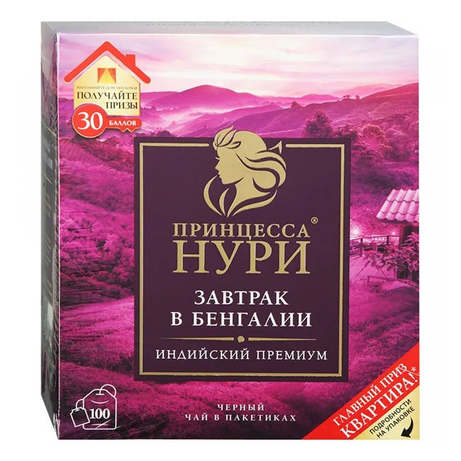 Чай Принцесса Нури Завтрак в Бенгалии черный индийский премиум 100 пак.